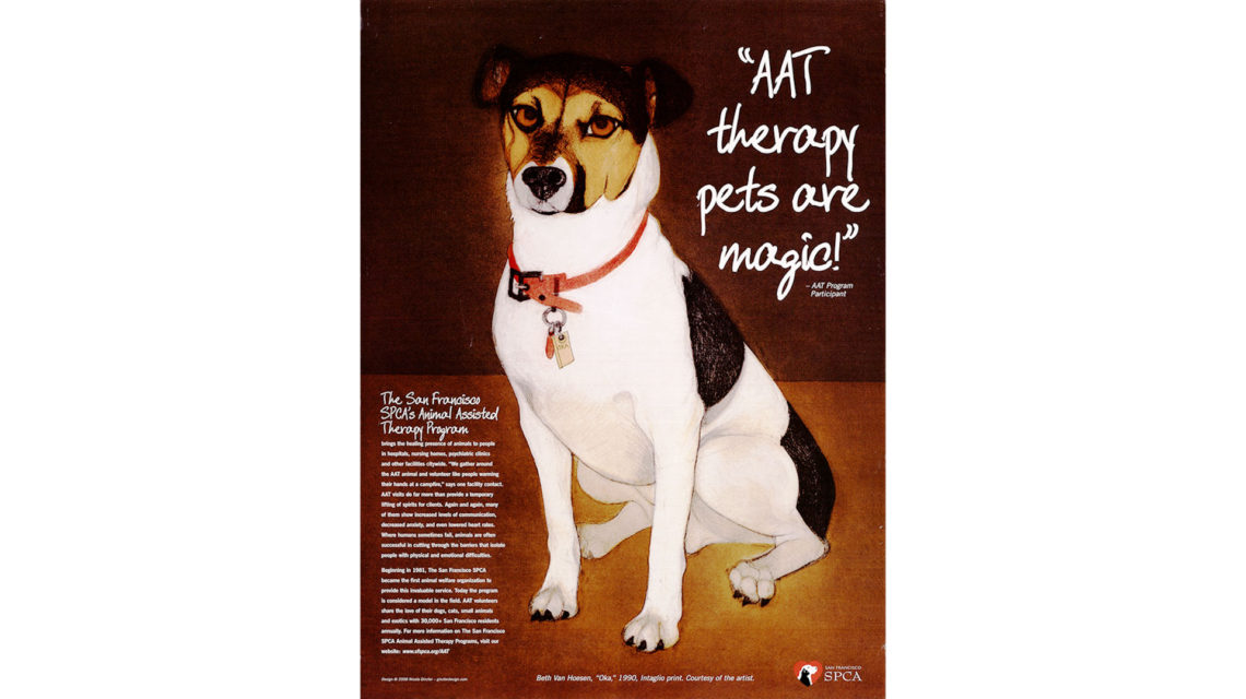 Working with the AAT Director, I designed this poster for sale to AAT program participants, SPCA staff and the general public. The striking artwork was donated by an accomplished illustrator currently in an assisted living facility, and the headline quote is from a program participant. In addition to the design, I chose the headline and helped write the body copy.